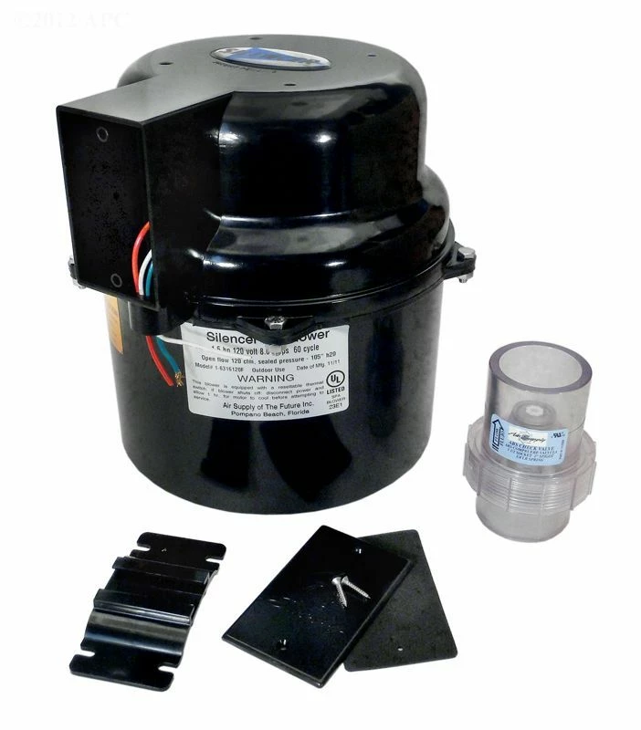 The Air Supply 6316120 Silencer Spa Blower is a 120 Volt, 1.5 Horsepower Blower. Included with each silencer is a durable spring check valve. This is far more effective than flapper valves at stopping motor damage, which means fewer service calls. Air Supply is committed to quality and service. Call 800-848-3077 for technical information and blower sizing.