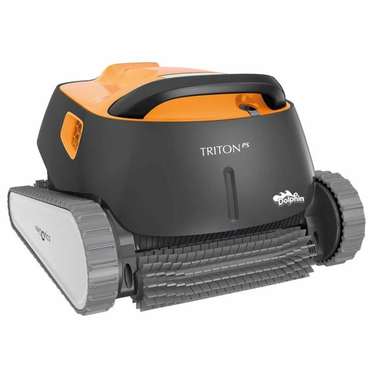 Lighter, smarter, and more powerful! The newly designed Triton with PowerStream is the answer to your pool cleaning needs! The new PowerStream Technology ensures superior wall and tile cleaning like never before. As the cleaner moves vertically up the wall, water is propelled out in multiple directions creating a constant grip. This enables precise cleaning while moving along the water line. The Triton with PowerStream also features active brushing which means the large brushes spin two times the speed of the robot, removing the most difficult, and stuck-to-the-wall contaminants. One of the obvious differences in this cleaner is the completely different body style. The Triton with PowerStream now has a large, hinged top cover that lifts upwards to reveal an extra-large capacity filter basket which is easily removed and cleaned. The floats were also removed since the PowerStream Technology enhances the climbing and maneuverability. Another notable visual difference is the lack of a swivel on the cable for the Triton with PowerStream. This is because these units utilize software controlled anti-tangling algorithms to prevent the cable from tangling during its cleaning cycle. The weekly timer function allows the Triton with PowerStream to automatically run its programmed two-hour cycle at set intervals throughout the week. This cleaner is also equipped with a fast water release system that removes excess water making sure the cleaner is still lightweight even after completing its cleaning cycle. Backed by a 24 month warranty, the Triton with PowerStream has it all when it comes to robotics.