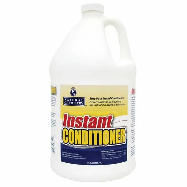 Natural Chemistry’s Instant Pool Water Conditioner is not an acid (it’s a salt) and has a pool friendly pH of about 8.0. Add it to the pool and an instant later it is in solution and ready to protect your chlorine.