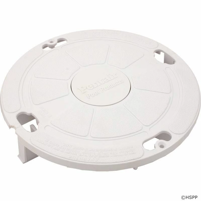 The Pentair 85007400 White Pool Skimmer Lid fits Pentair PacFab Admiral pool skimmers. The diameter is approximately 9-1/8 inches and the color is white. This lid has 2 locking tabs on opposite sides located on the bottom side of the lid. This is a genuine Pentair replacement part.
