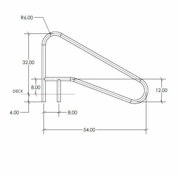 The S.R. Smith DMS-102A Hand Rail with Brace is suitable for use on pool stairs and sloped entries. Constructed of high quality polished stainless steel. Not recommended for salt water pools, use part number DMS-102A-MG.