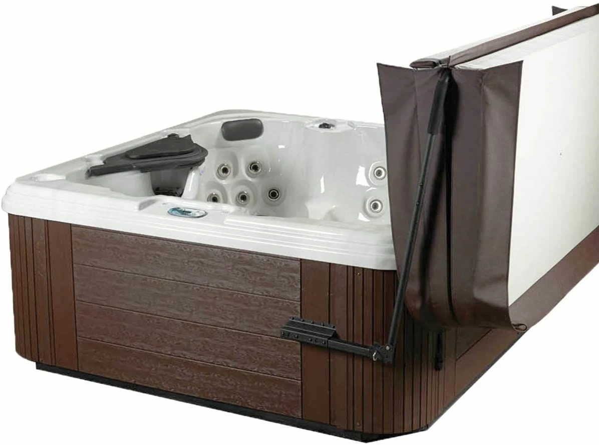 Ultralift’s Standard Mount hot tub cover lifter lets you adjust the open cover height to your preference – high for greater privacy or low for a less obstructed view. You can mount the brackets high on the side of your spa so your cover enhances privacy, or low on the spa side or on the deck to store the cover behind your spa.